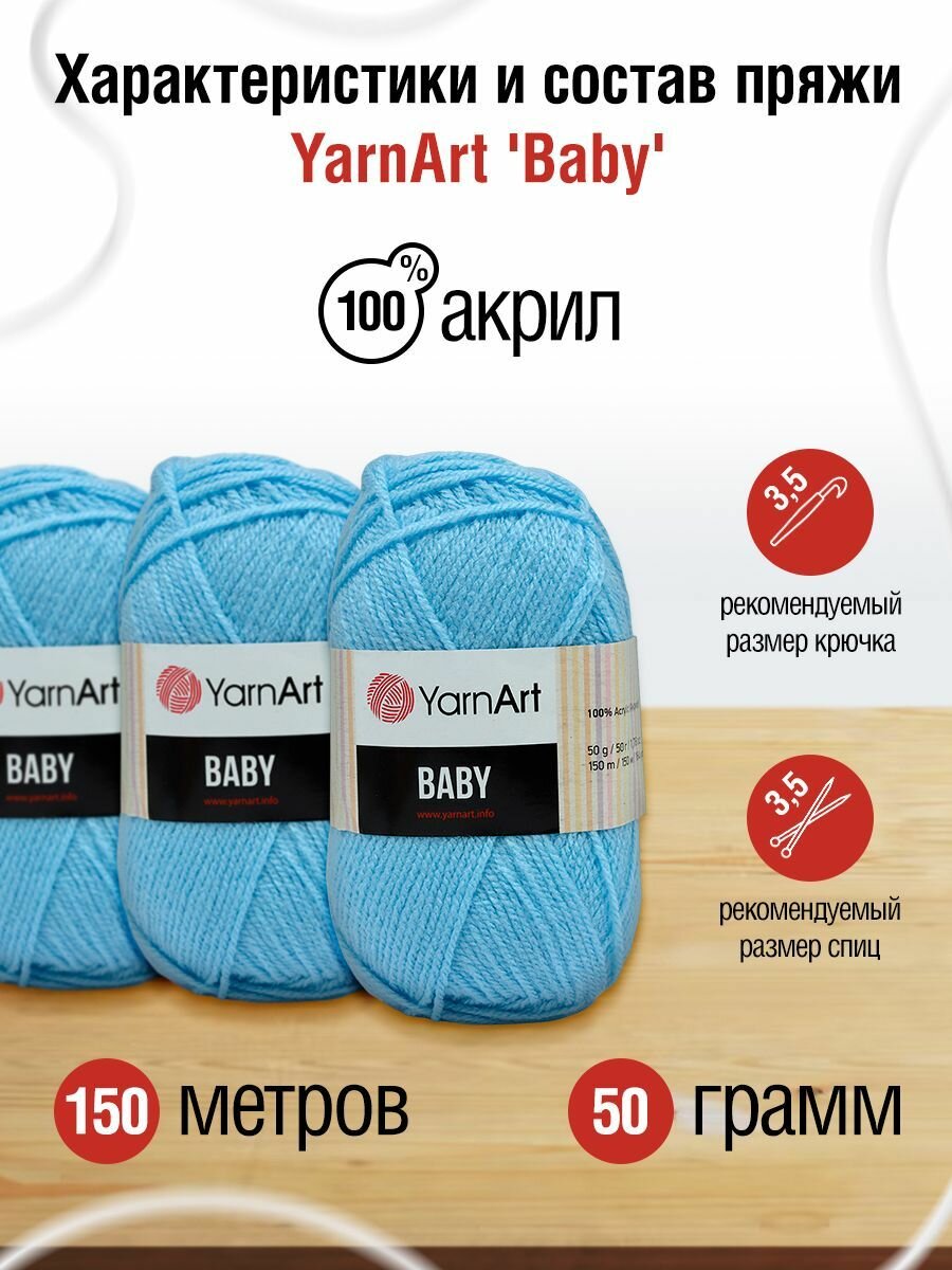 Купить Пряжа для вязания YarnArt 'Baby' 50г, 150м (100% акрил) (215 светло-голубой), 5 мотков