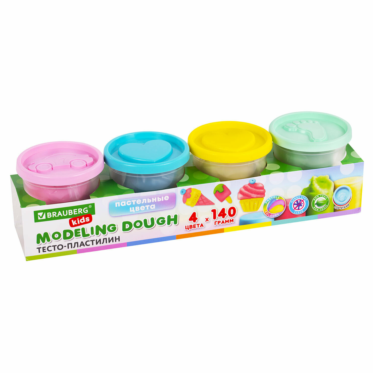 Купить Пластилин, тесто для лепки, 4 цвета, 560 г, пастельные цвета, крышки-штампики, Brauberg Kids, 106717