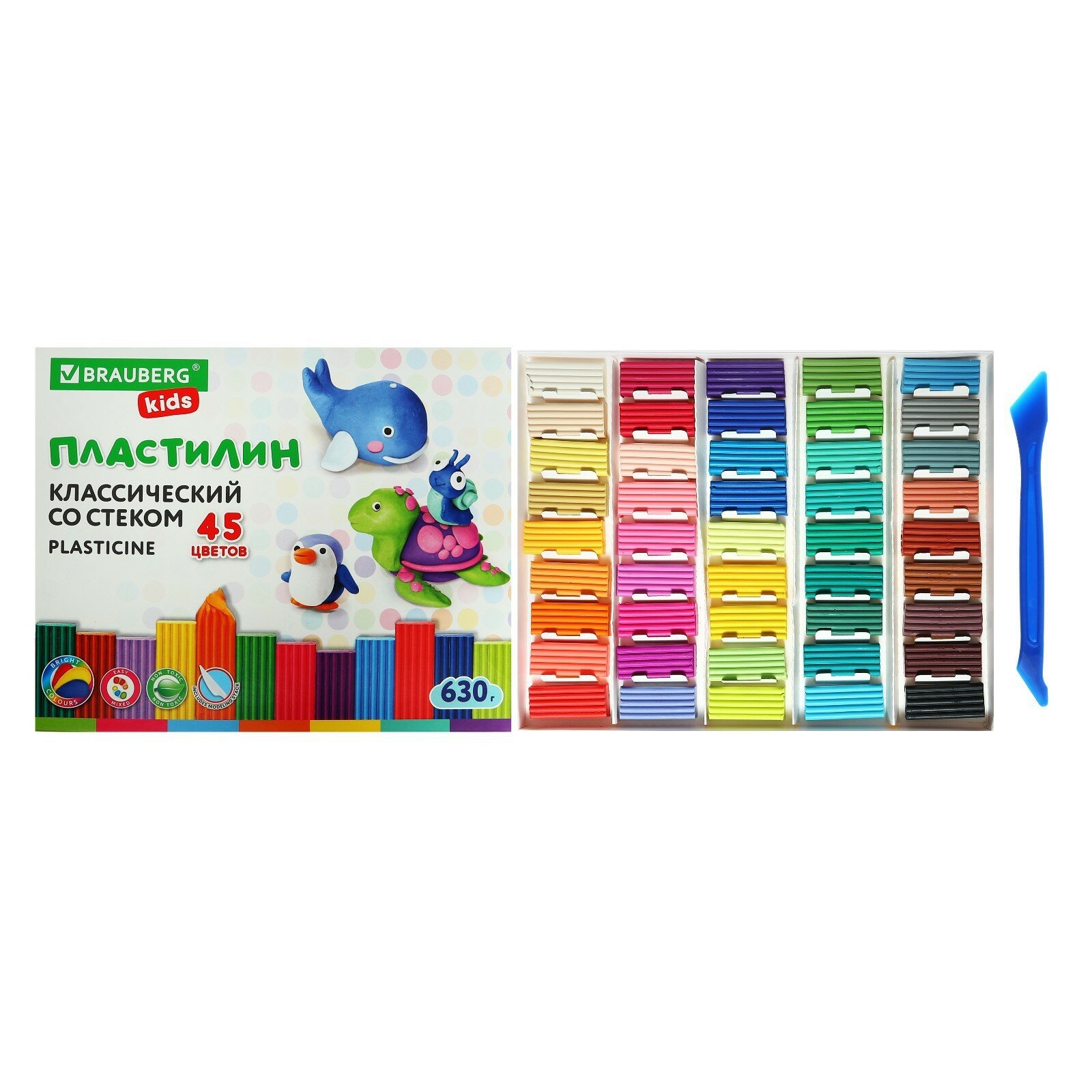 Купить Пластилин 45 цветов Brauberg Kids, 630г, со стеком (106680)