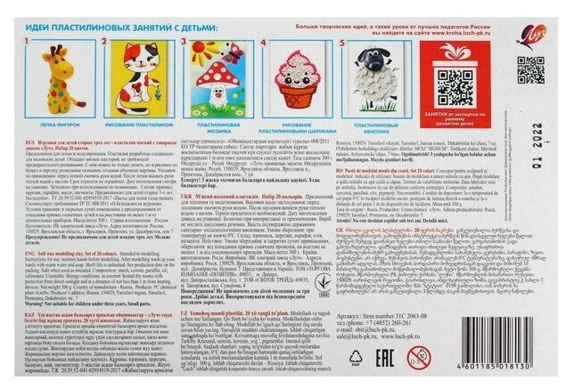 Пластилин мягкий (восковой) 20цв 300г "Кроха" 7883993 интересное: