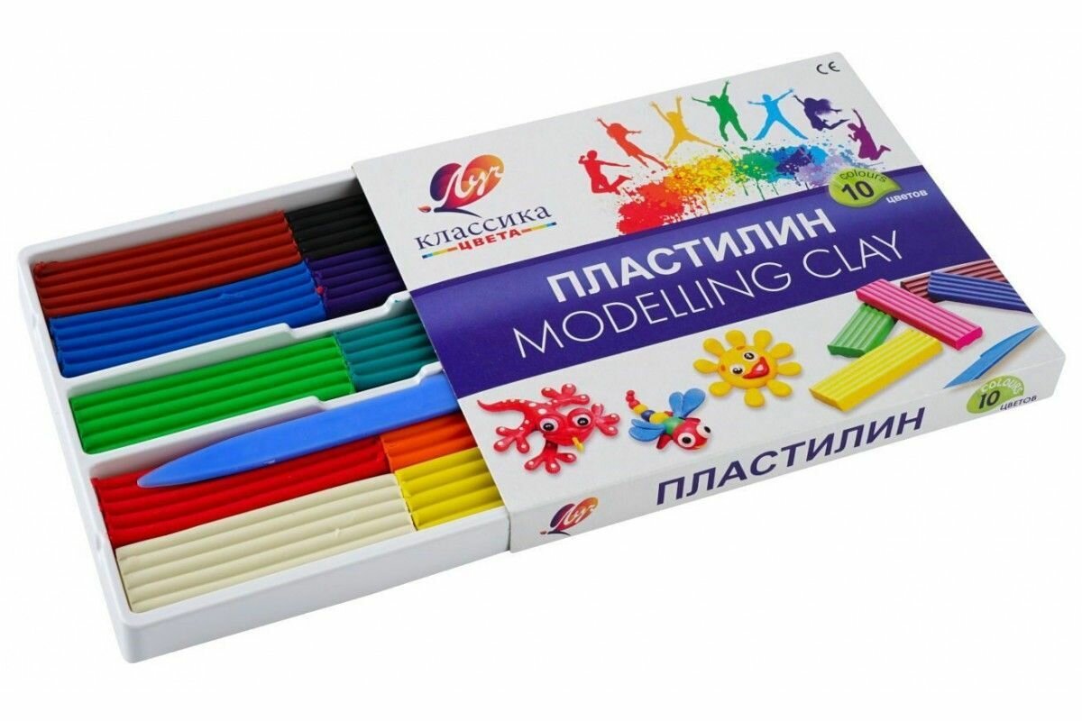 Пластилин 10 цветов Луч "Классика", 200г со стеком, картон (7С 304-08), 20 уп.