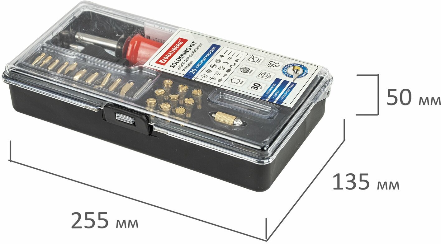 Набор для выжигания и пайки, 20 насадок+нож, в пластиковом кейсе, BRAUBERG, 664701