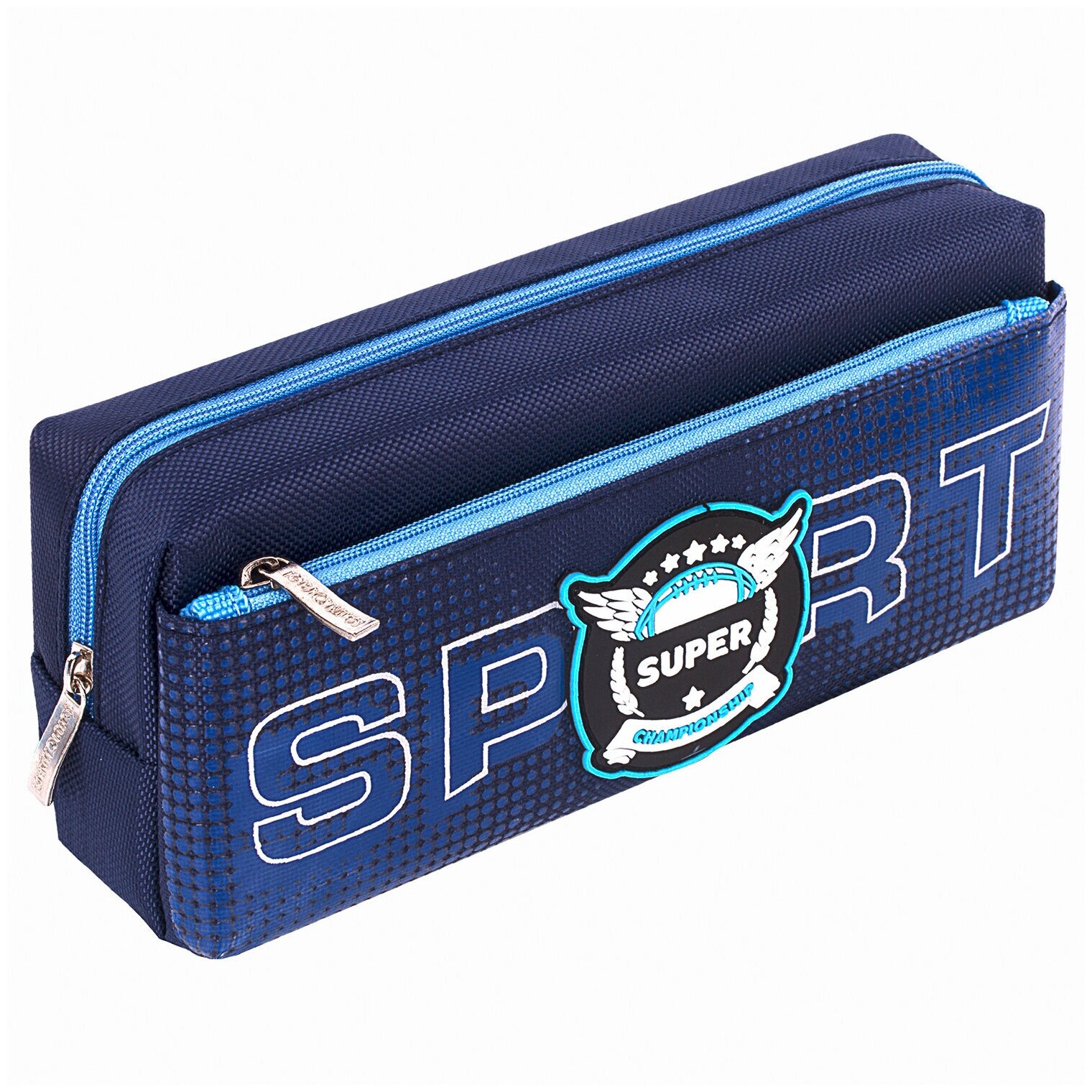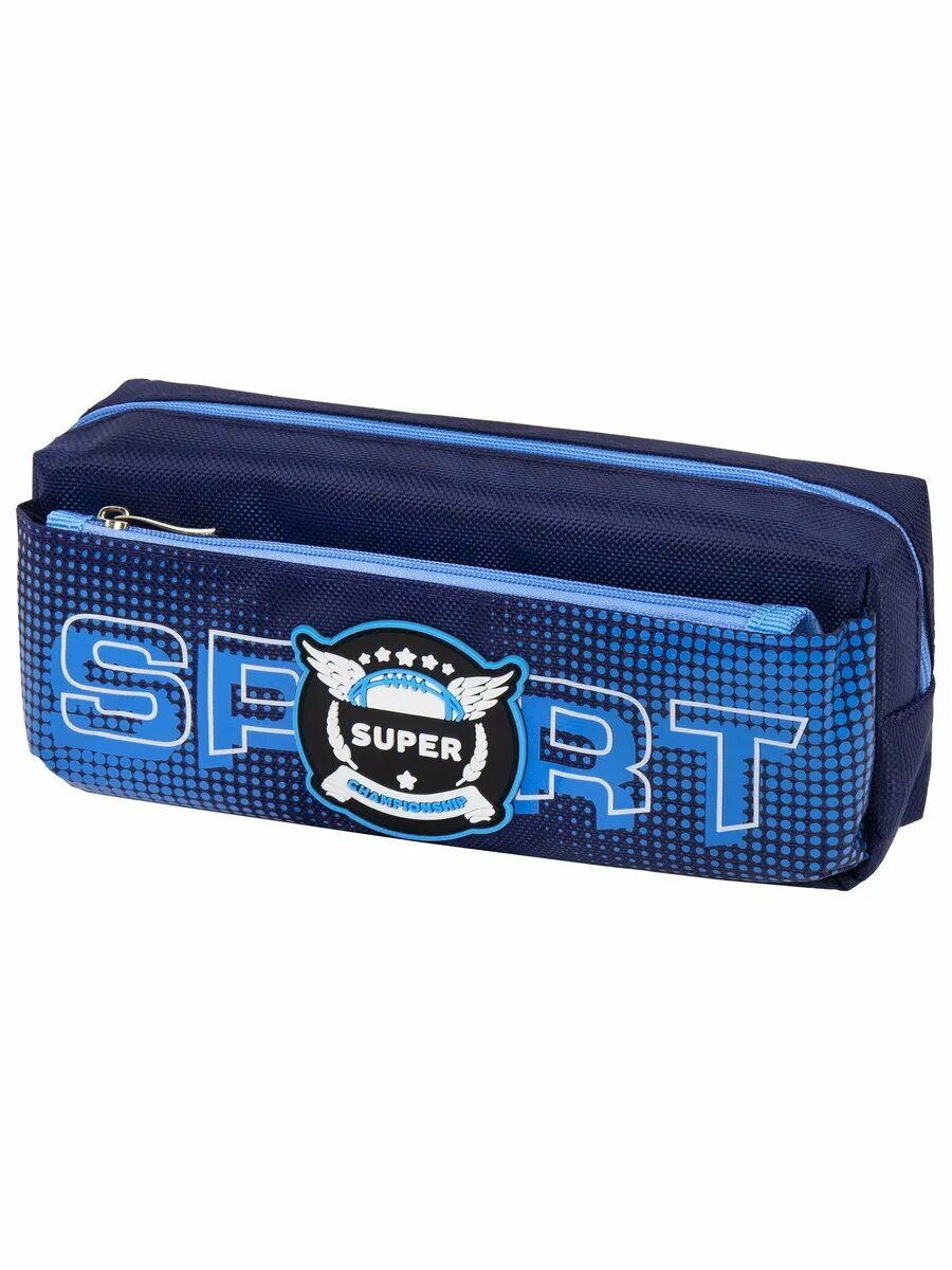 Пенал-косметичка школьный для ручек, карандашей Юнландия, 2 отделения, полиэстер, Sport Scorer, синий, 20х9х6 см, 271575