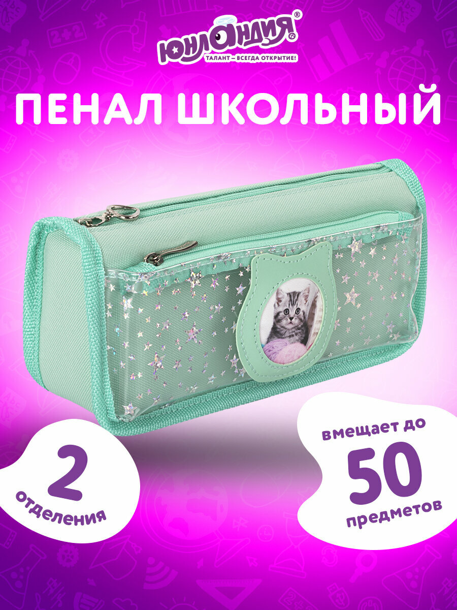 Пенал-косметичка юнландия, 2 отделения, полиэстер, "Kitty", мятный, 21х6х9 см, 270262