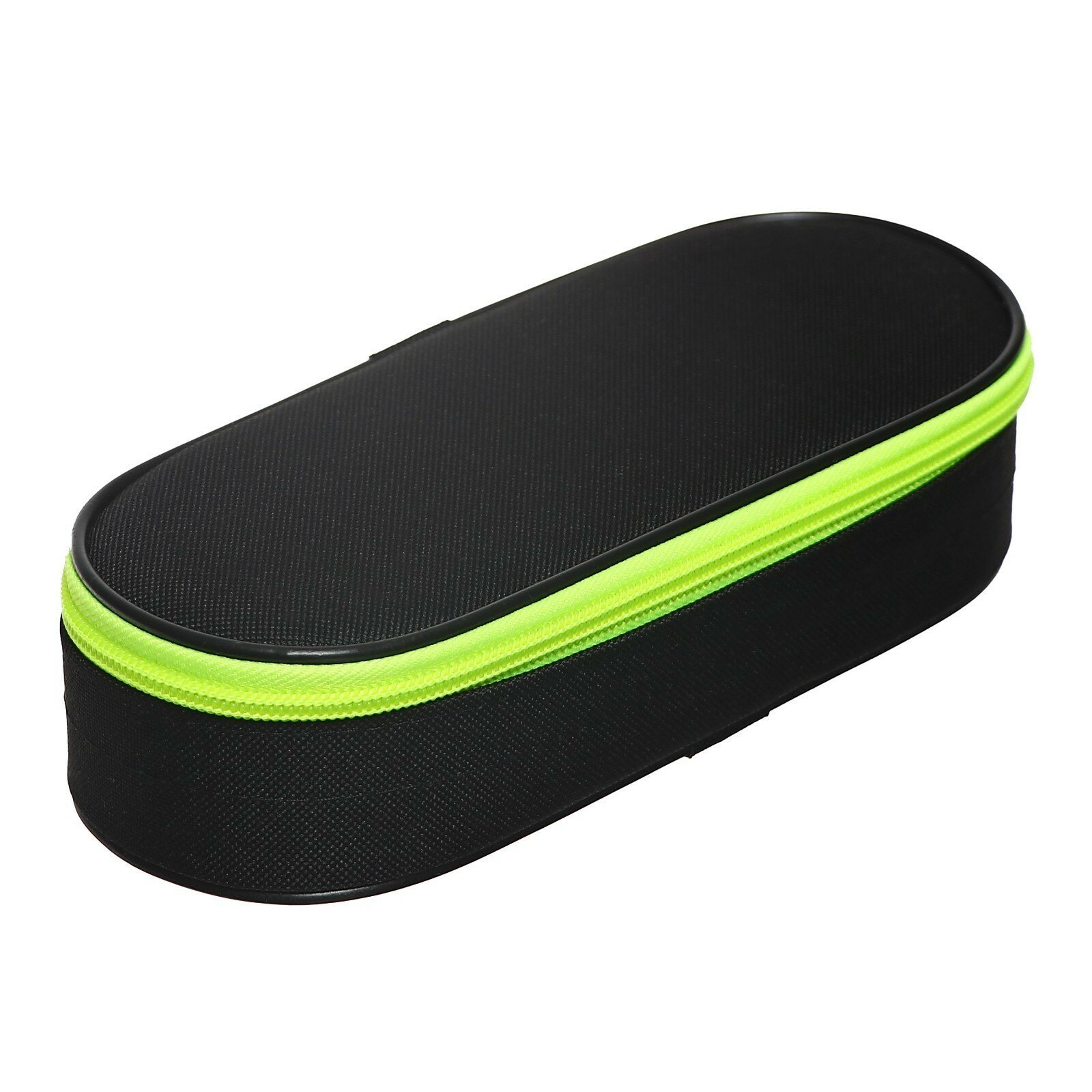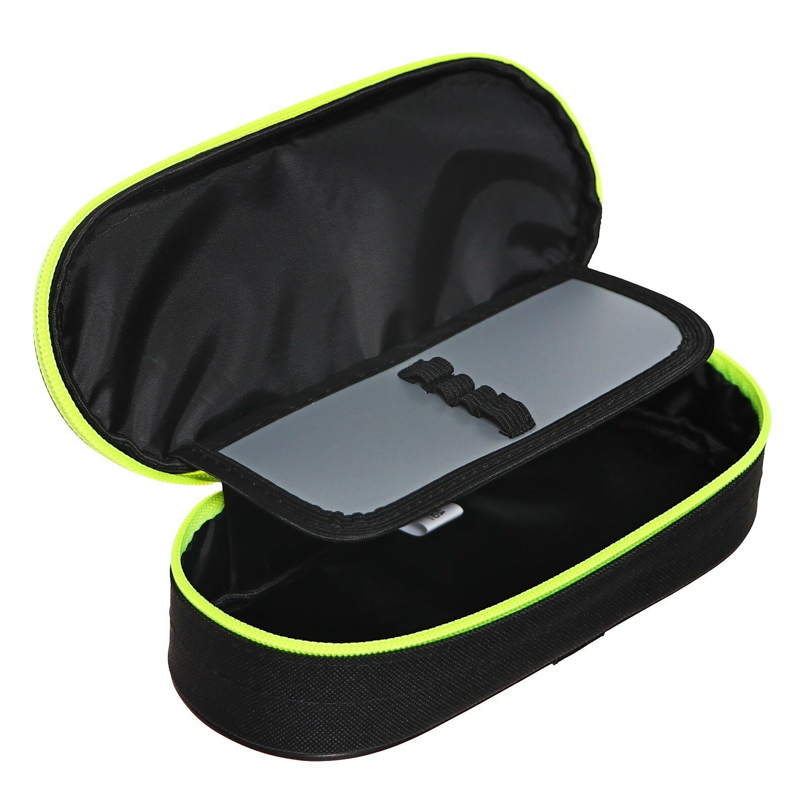 Купить Пенал-футляр, 50 х 210 х 85 мм с откидной планкой, мягкий, тканевый, Оникс, ПМК 24-42 Black, чёрный/ярко-салатовый
