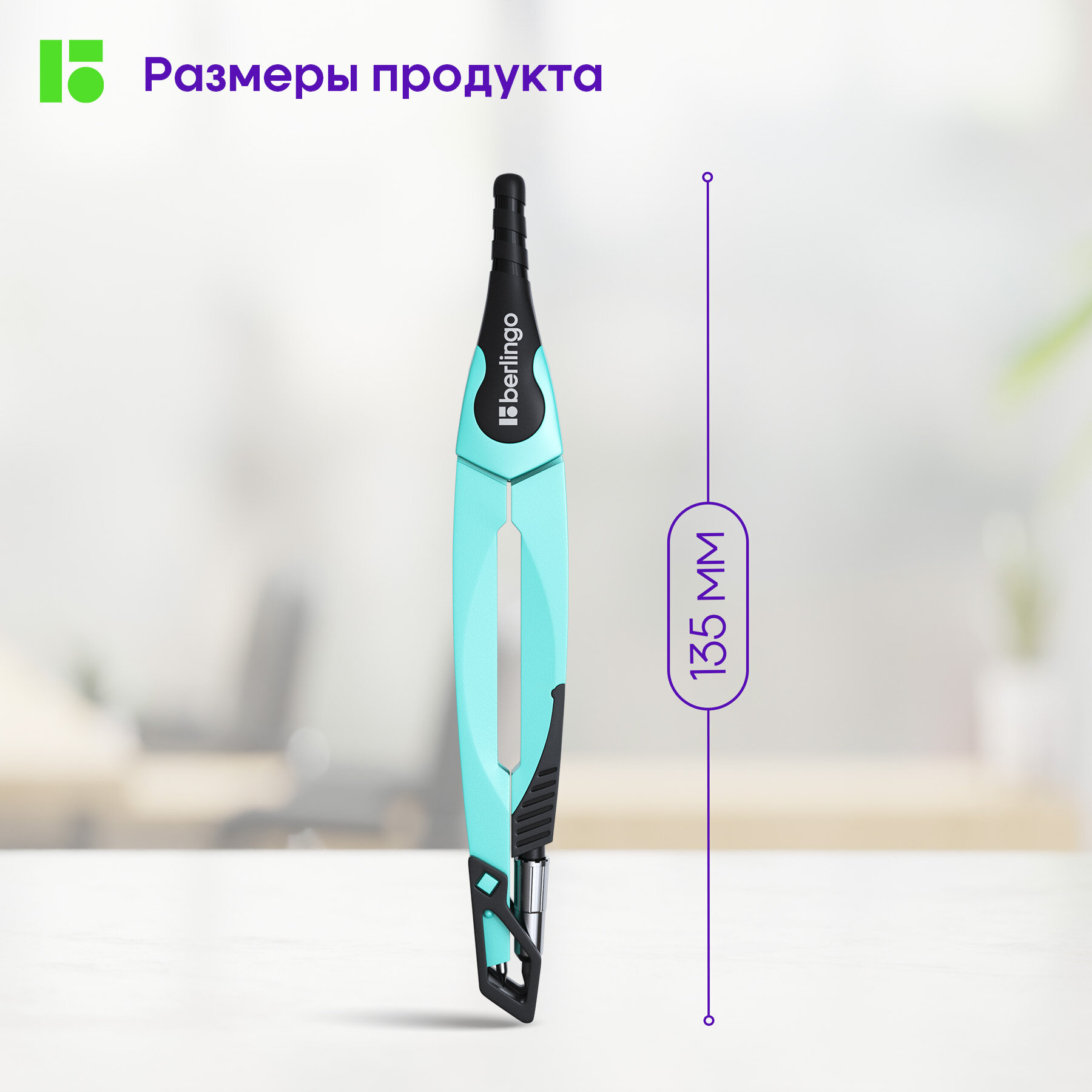 Циркуль Berlingo Envy, 135мм, металлический, салатовый, блистер (CS_30001b)