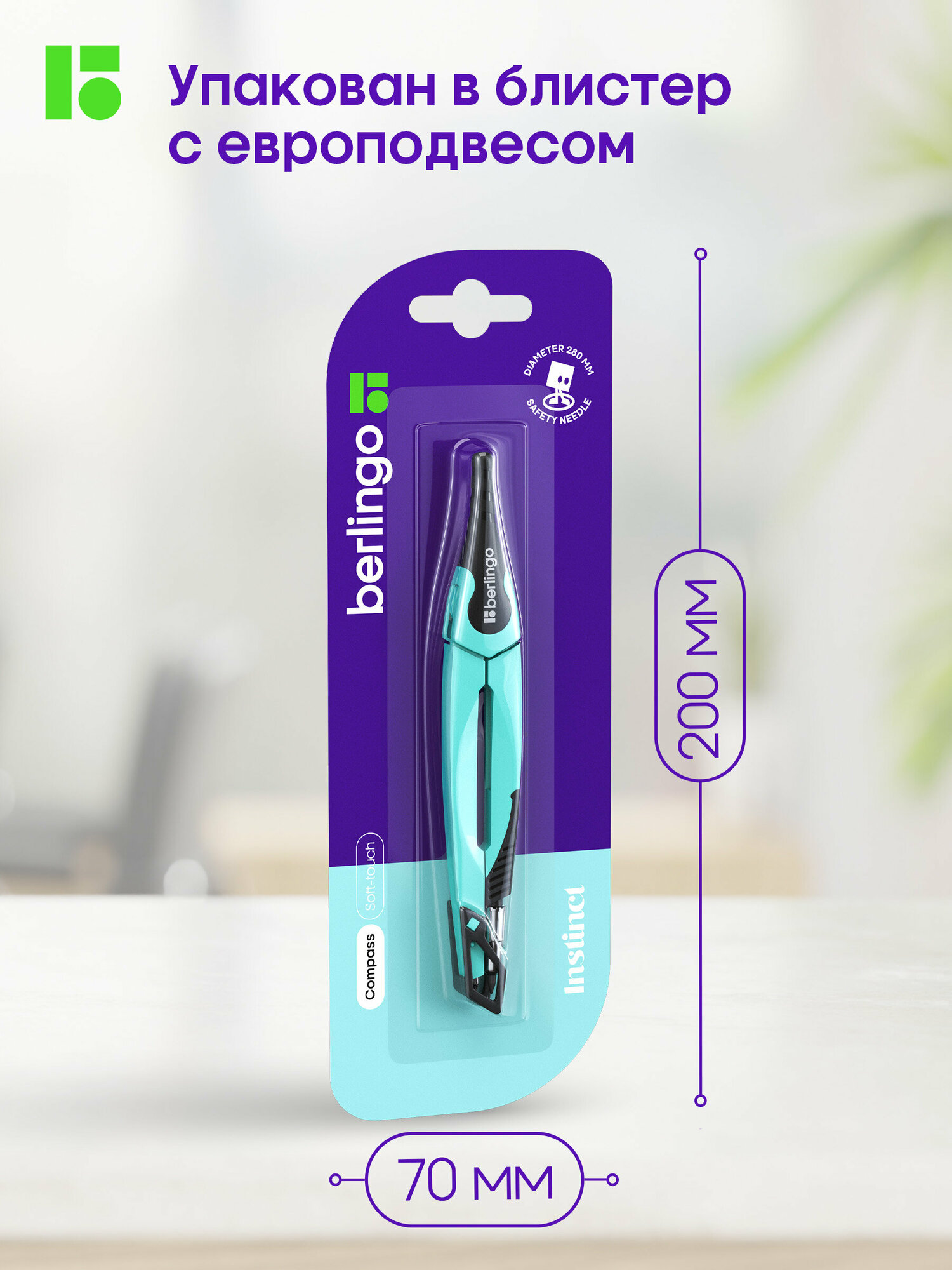 Циркуль Berlingo "Instinct", 13,5см, металлический, аквамарин