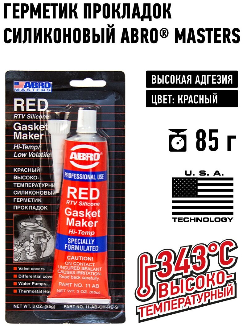 Герметик - прокладка (красный) 85 гр. ABRO MASTERS интересное:
