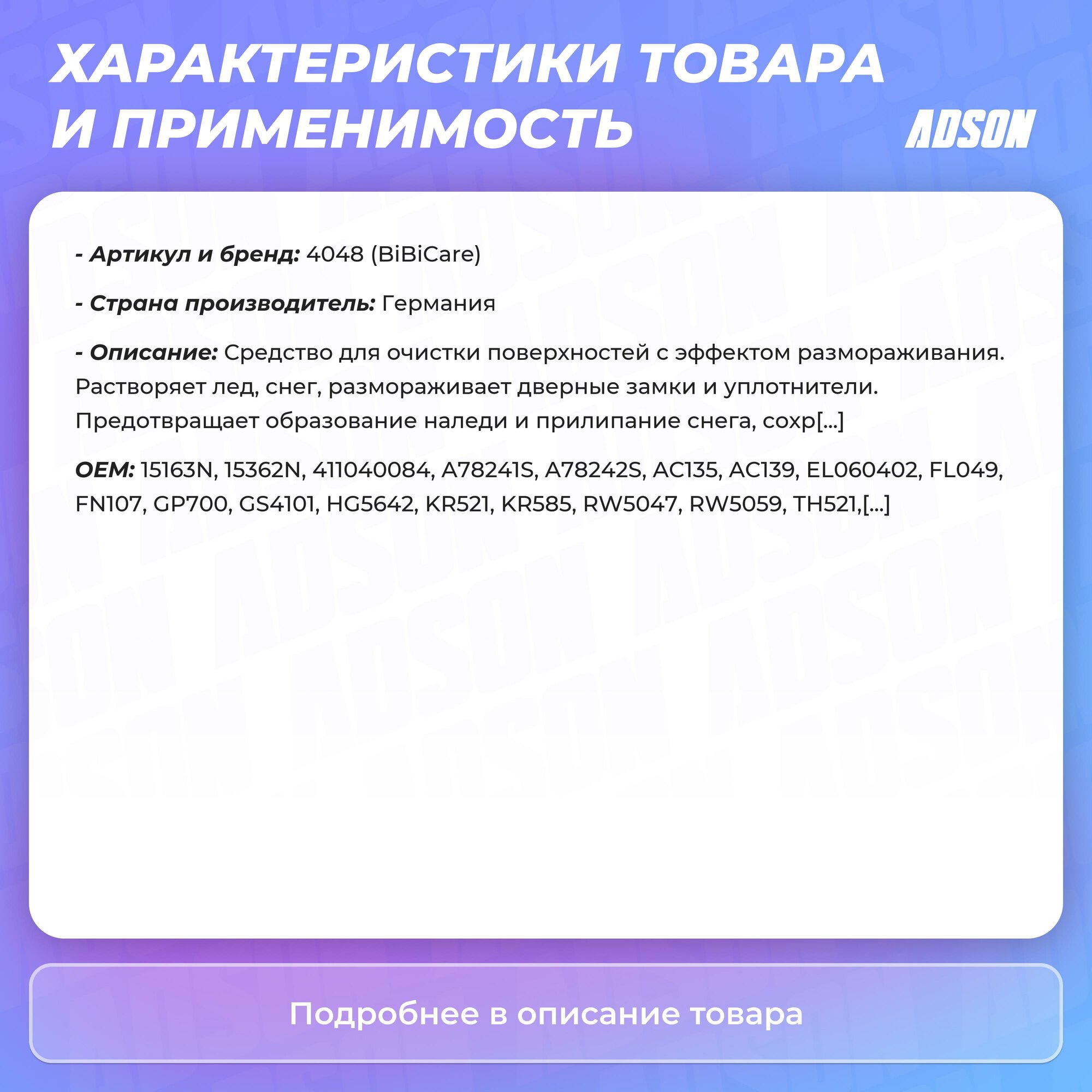 Размораживатель стекол и замков bi bi care, 500 мл / 4048 интересное: