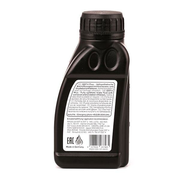 | Допуски и стандарты | FMVSS 116 DOT4, DOT3, Ford SAM-6C9103-A, GM GME L5 104, Jaguar MNA 2829 AA, Jaguar XR83 M6C25 A, MB 331.0, Renault 41-02-001, SAE J 1703, SUPER DOT 4, TL 766 X/Y, ISO 4925 |