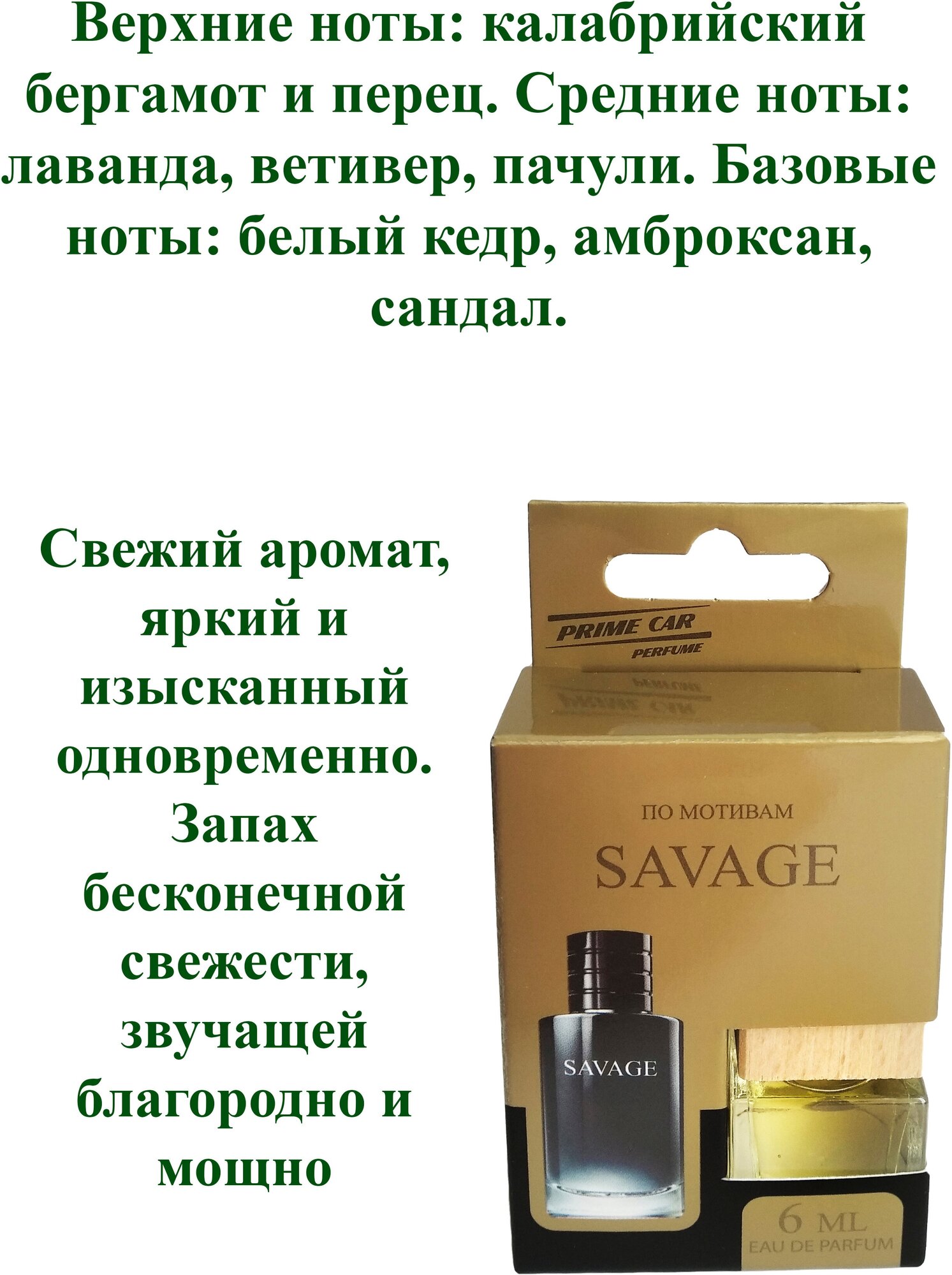 Ароматизатор в машину "PRIME CAR - (SAVAGE)" (6мл) / мужской автопарфюм для автомобиля