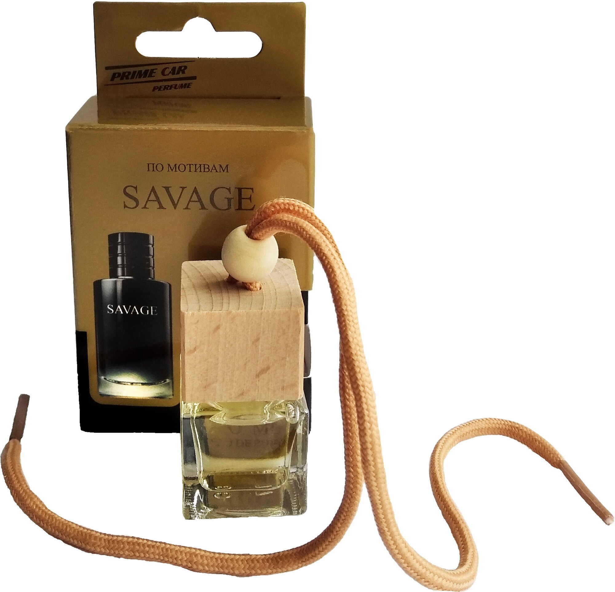 Ароматизатор подвесной для автомобиля с деревянной крышкой и шнурком"PRIME CAR - (SAVAGE)" (6мл) / мужской автопарфюм