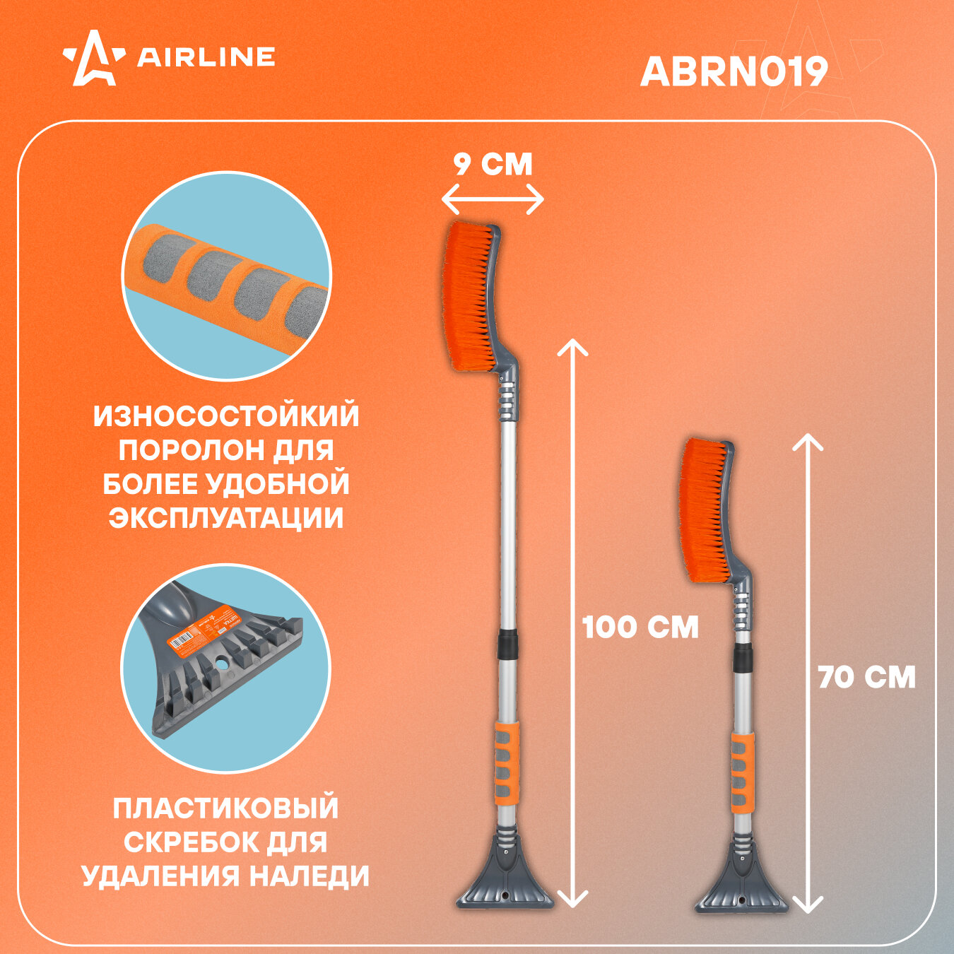 Щетка-сметка от снега и льда, 70-100см, с телескопической рукояткой и мягкой щетиной, AIRLINE