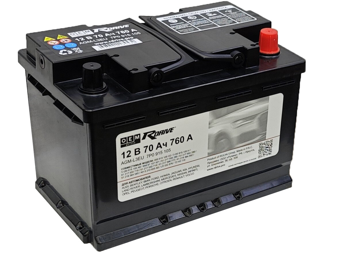 Аккумулятор 70Ач "R-Drive OEM AGM-L3EU 7P0915105 VAG" О.П. 278х175х190 интересное: