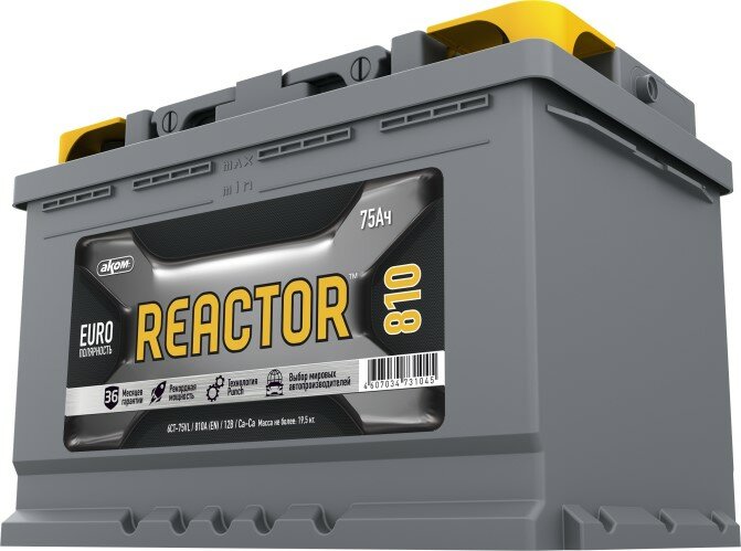 AKOM 4607034730116 Аккумулятор 6СТ- 75 Reactor п.п. (пусковой ток 820А) L3 (AKOM)