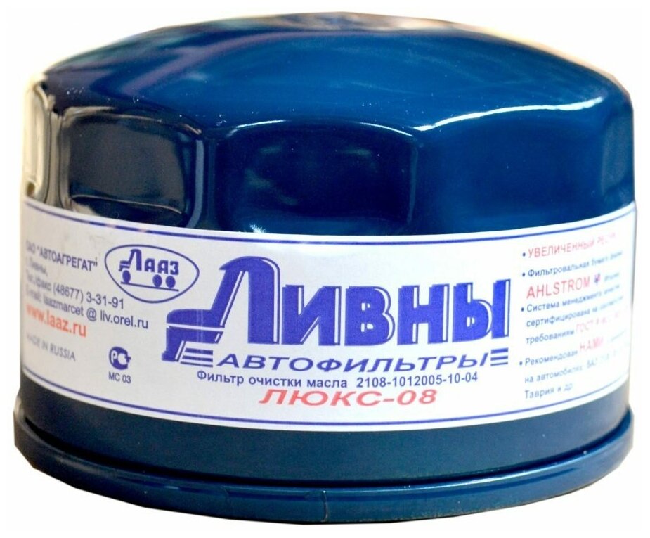 Масляный фильтр люкс-синий Lada Kalina/Granta/Vesta/Largus/X-ray/ВАЗ 2101-09/2110 Ливны 2108-1012005-10-04