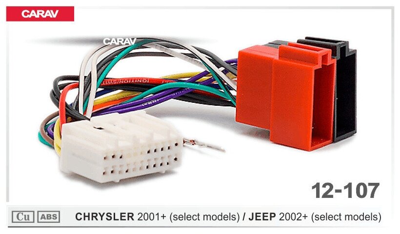 | Комплектация | Разъем CARAV 12-107 / ISO - переходник для подключения автомагнитолы (питание + акустика) на автомобили CHRYSLER 2001+ (select models) / JEEP 2002+ (select models) |