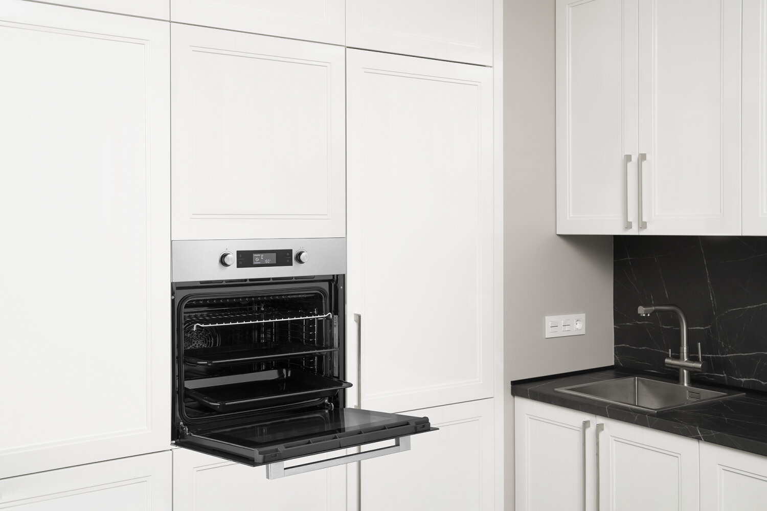 Электрический духовой шкаф Weissgauff EOM 691 PDW Steam Clean, объем XXL 70 литров, 60 см, 3 года гарантии, Кольцевой нагревательный элемент, Тройное стекло дверцы, Утапливаемые рукоятки PIPO, Класс энергопотребления А