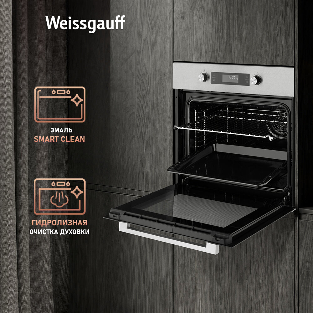 Электрический духовой шкаф Weissgauff EOM 691 PDW Steam Clean, объем XXL 70 литров