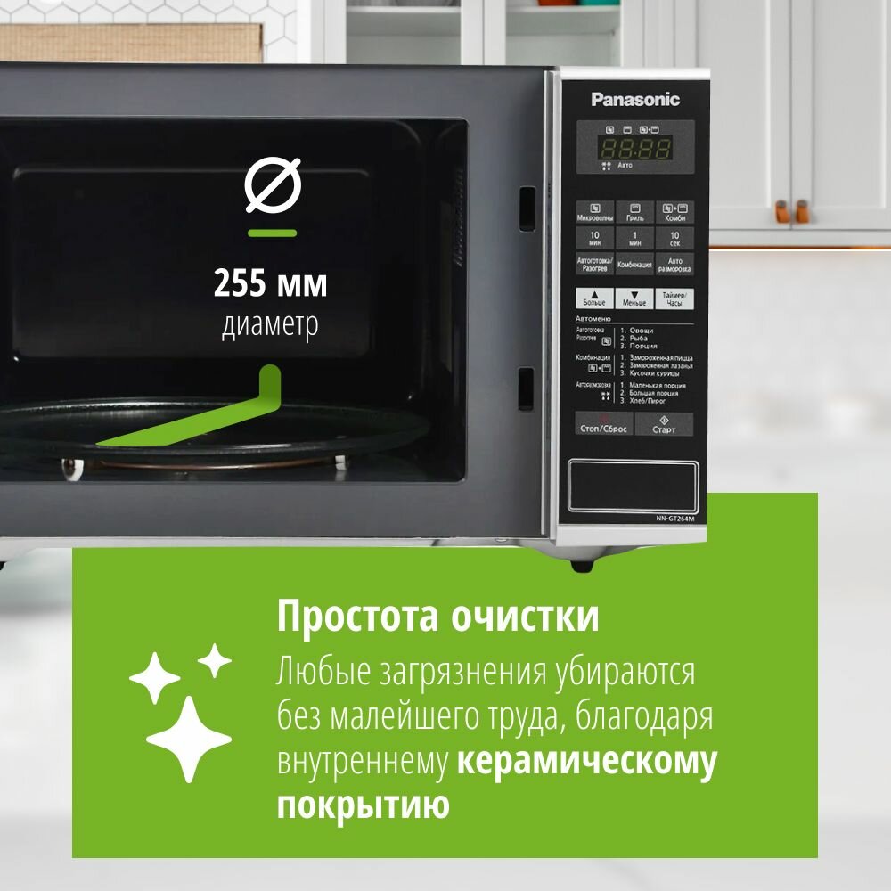 Микроволновая печь Panasonic NN-ST254MZPE, 800 Вт, 5 автоматических программ приготовления, таймер 90 минут, черный интересное: