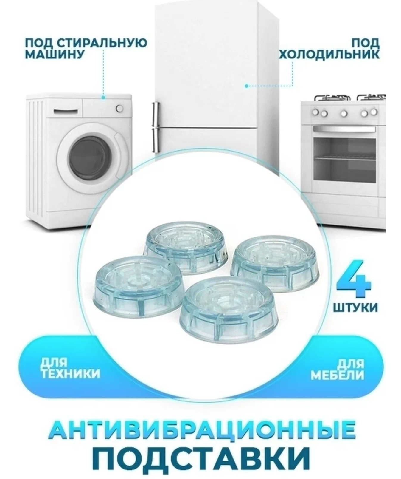 Антивибрационные подставки, для стиральных машин, прозрачные