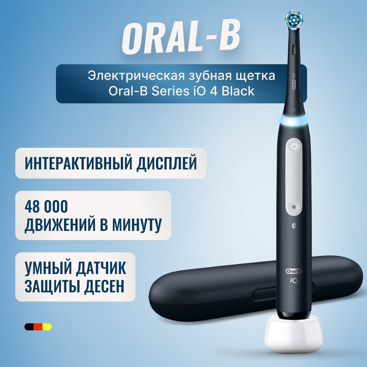 Электрическая зубная щетка Oral-B iO 4 Matt Black с 4 режимами, умным датчиком давления, черная/матовая