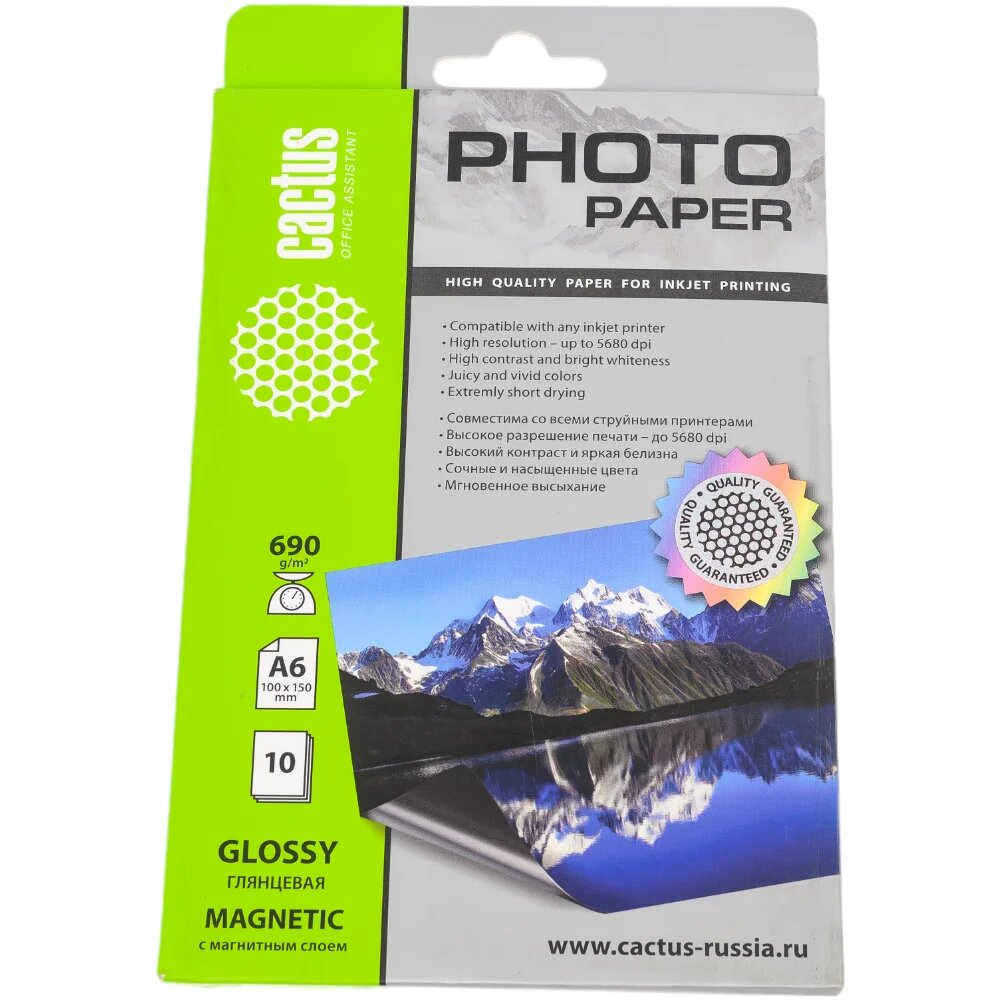 Фотобумага A6 690 г/м² глянцевое/магнитный, 10 листов, односторонняя Cactus (CS-MGA669010)