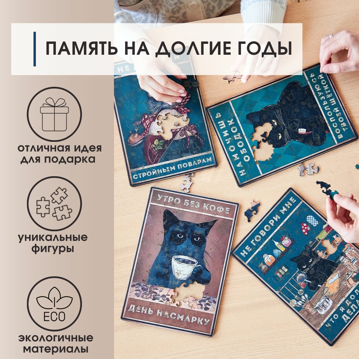 СохранитьДеревянные пазлы для взрослых и детей с рамкой 90 уникальных фигурных деталей кот кофе Vintage Puzzle Posters интересное: