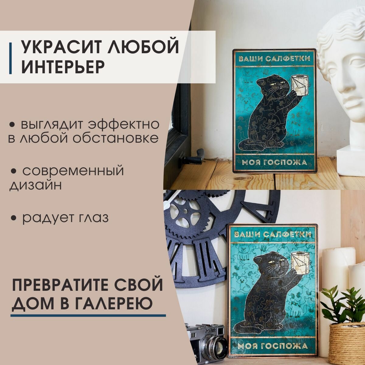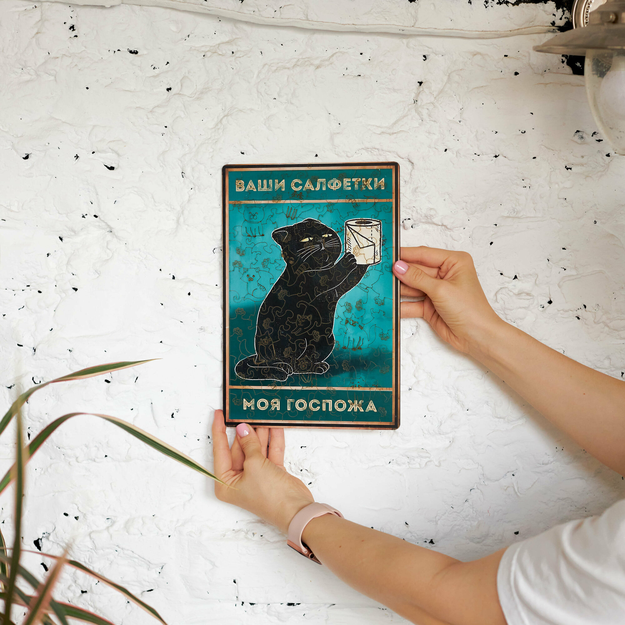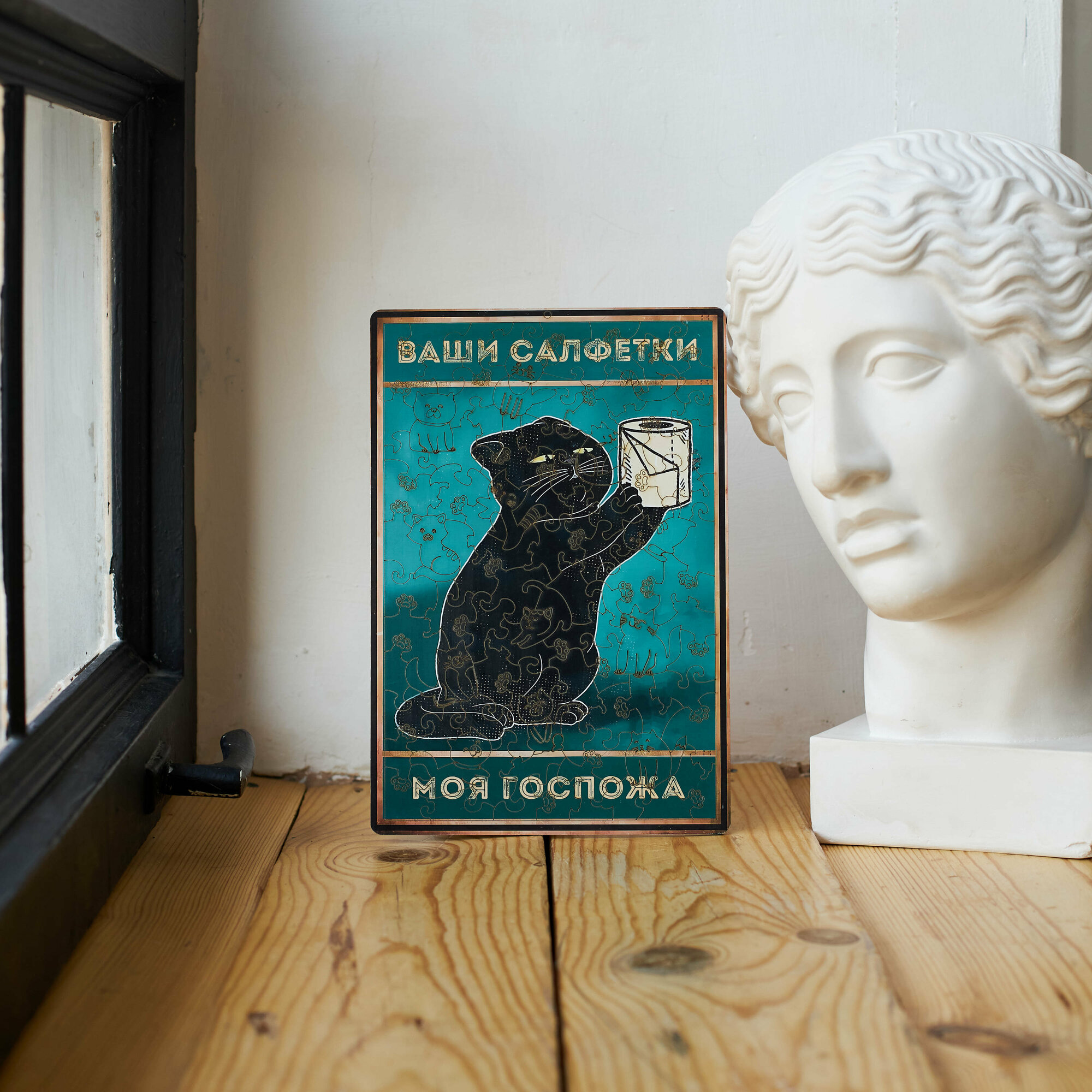 СохранитьДеревянные пазлы для взрослых и детей с рамкой 90 уникальных фигурных деталей кот туалетная бумага Vintage Puzzle Posters интересное: