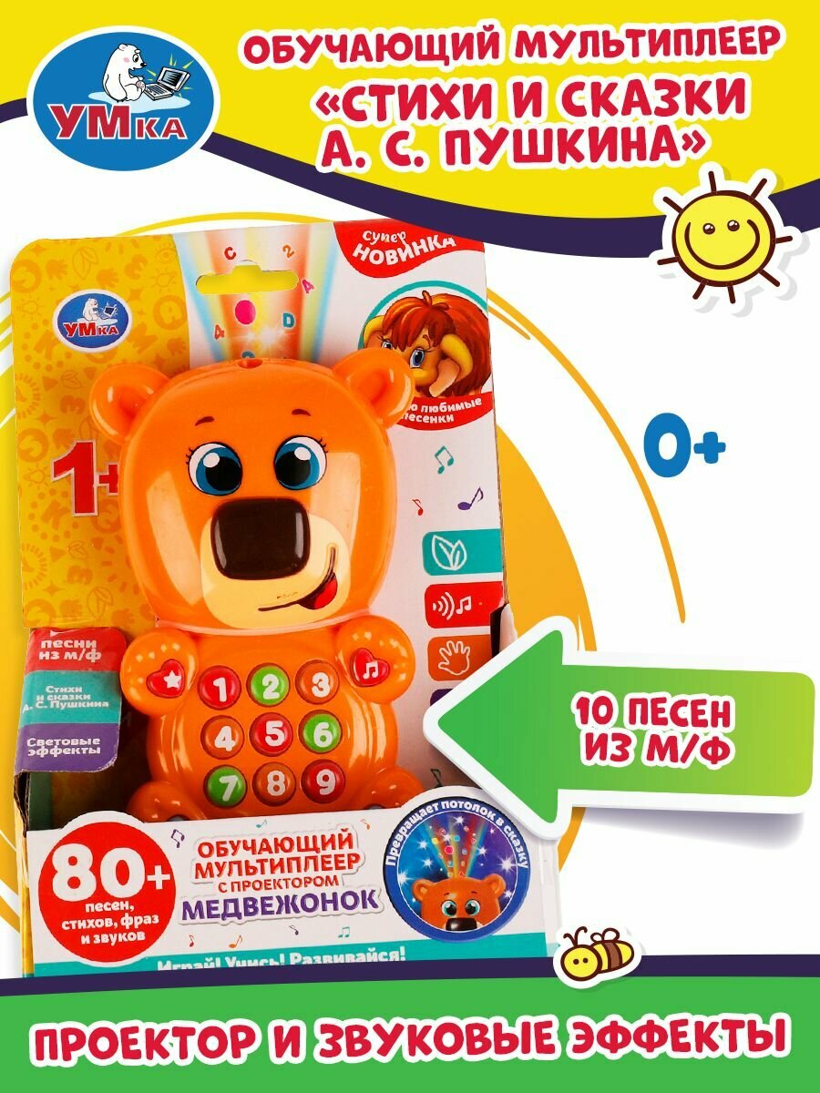 СохранитьМультиплеер с проектором Медвежонок Умка 80+ песен, стихов, фраз и звуков интересное: