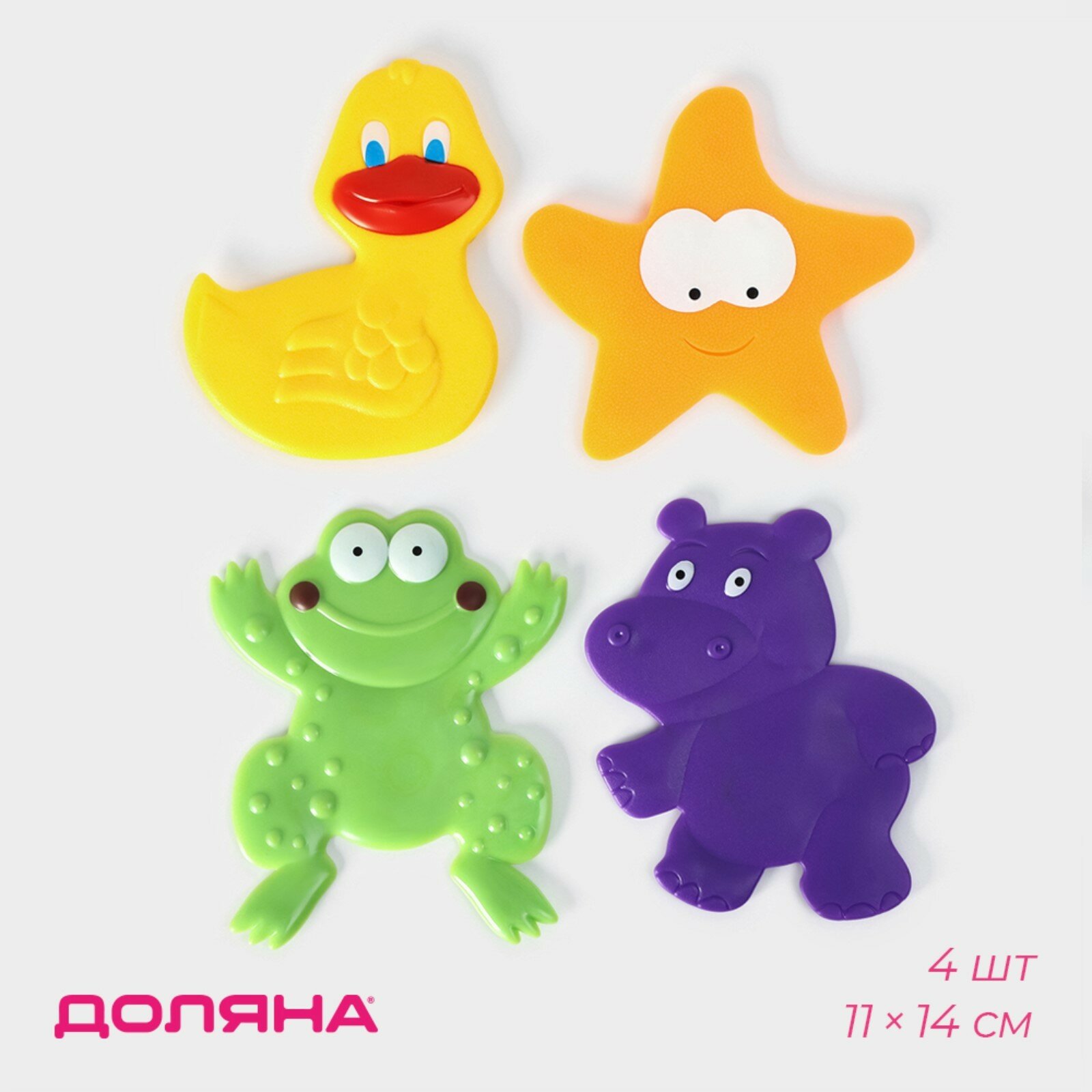 Купить Набор мини-ковриков для ванны на присосках Доляна «Зоопарк», 4 шт, 11×14 см