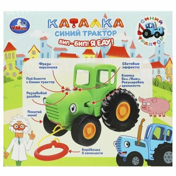 Музыкальная каталка зелёная 30+ песен и звуков Синий трактор Умка HT848-R2