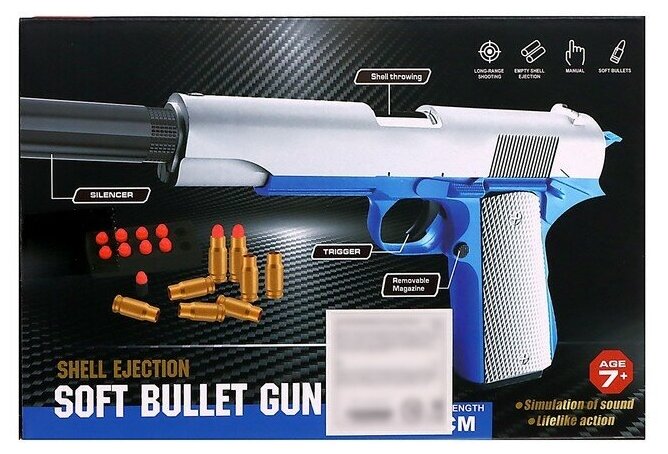 | Комплектация | Пистолет с гильзами, глушителем, стреляет мягкими пулями |
