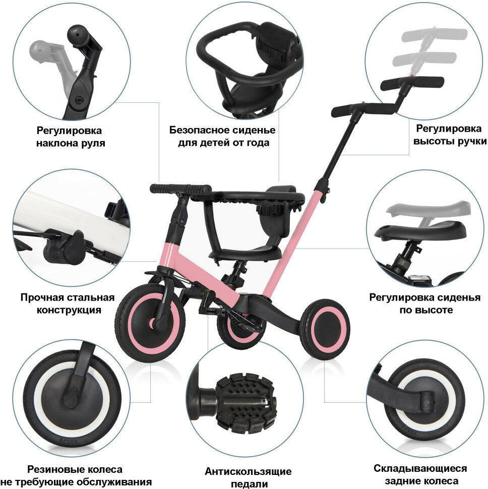 Детский беговел-велосипед 6в1 с родительской ручкой, розовый - TR008-PINK интересное: