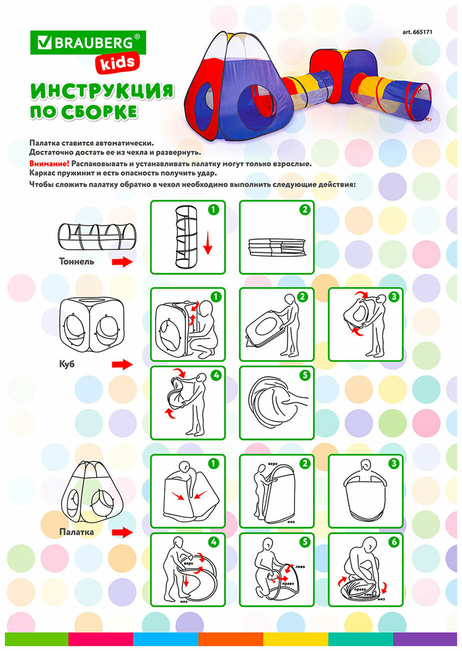 Купить Brauberg Детская игровая палатка-лабиринт с 2 тоннелями и кубом 4 в 1 в сумке Kids 665171