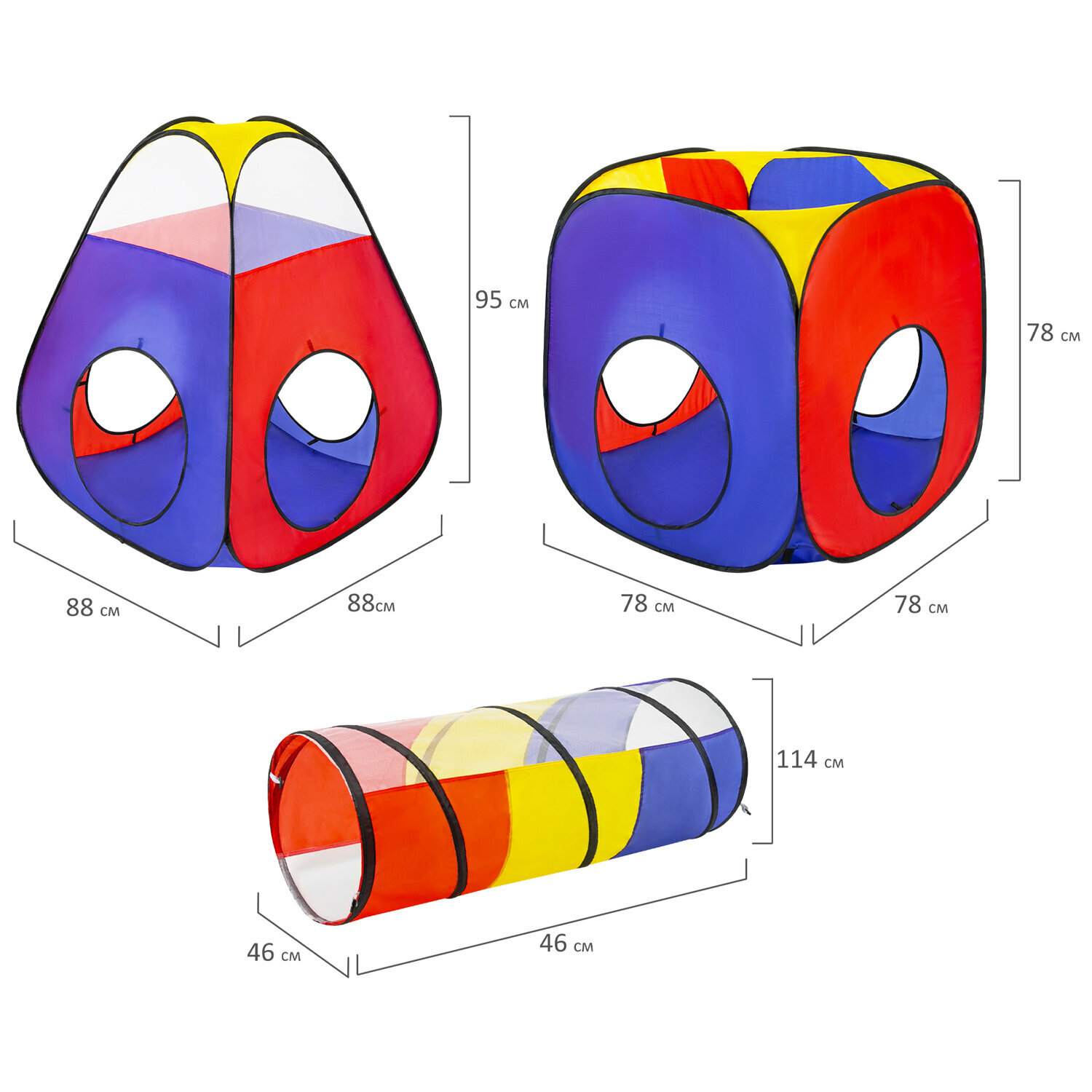 Детская игровая палатка-лабиринт с 2 тоннелями и кубом, 4 в 1, в сумке, BRAUBERG KIDS, 665171