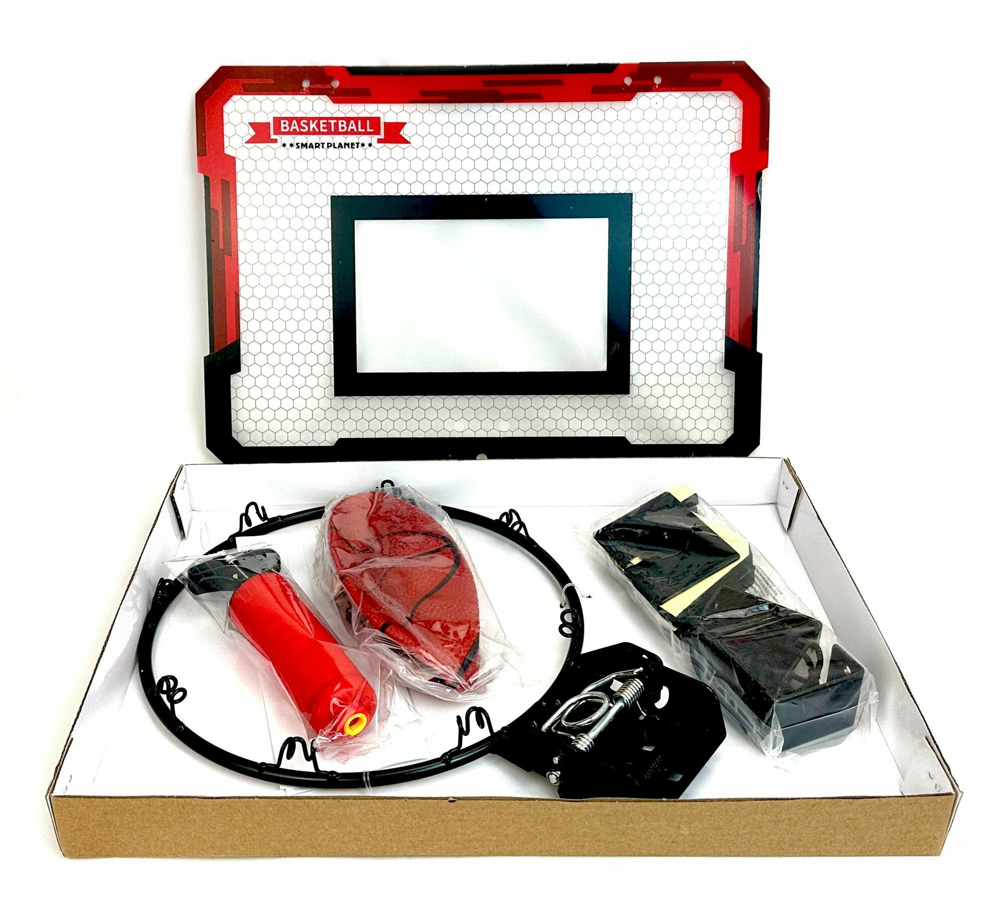 Купить Баскетбольное кольцо с амортизацией, набор детский для игры в баскетбол для дома и улицы, с мячом и насосом, 39х31х28 см, диаметр 25 см