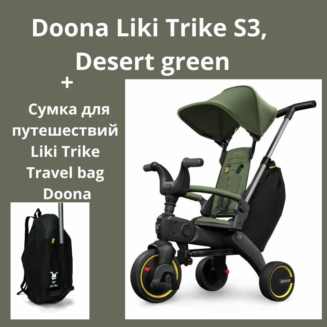 Купить Велосипед детский трехколесный складной Doona Liki Trike S3, Desert green, с сумкой Liki Trike Travel bag Doona