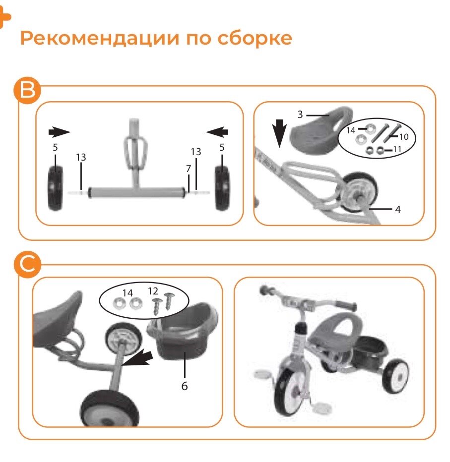 | Комплектация | Рама, руль, переднее крыло, задние колеса, переднее колесо,сиденье, передняя корзина, задняя корзина, вилка, крепеж и втулки. |