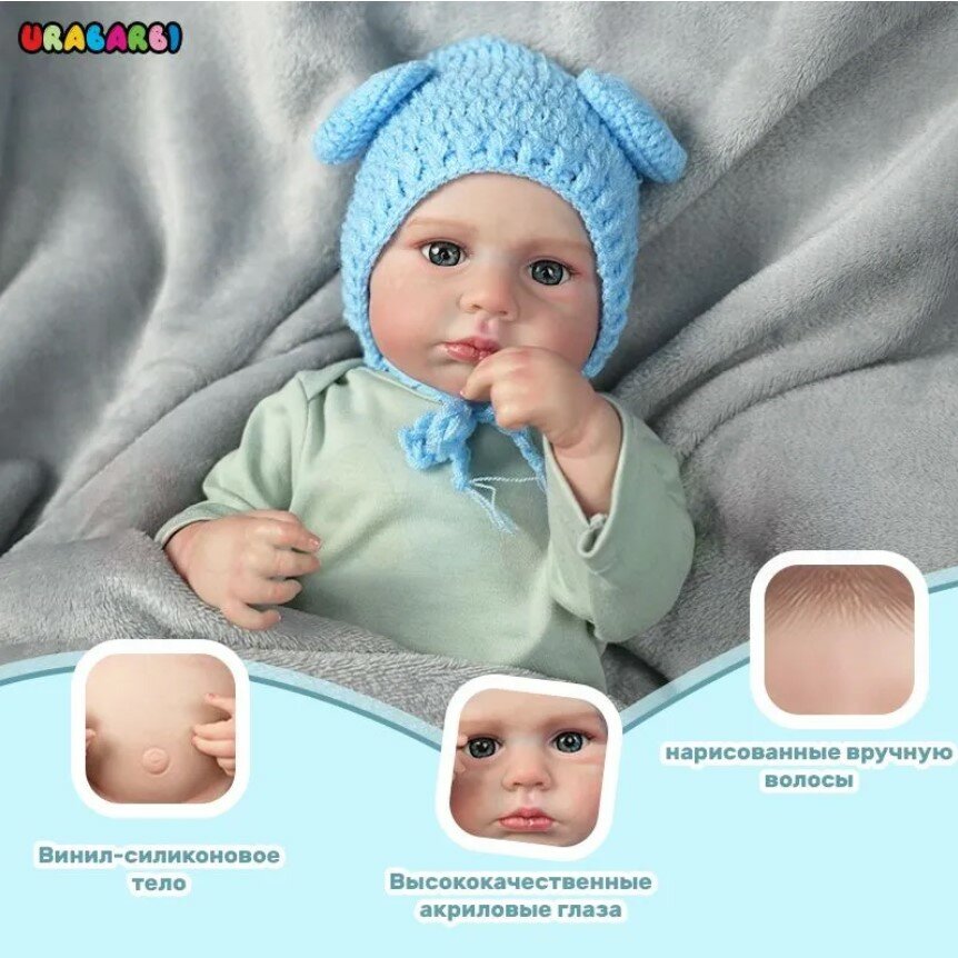 | Особенности | кукла-мальчик / кукла-реборн / можно купать / с мягконабивным телом |
