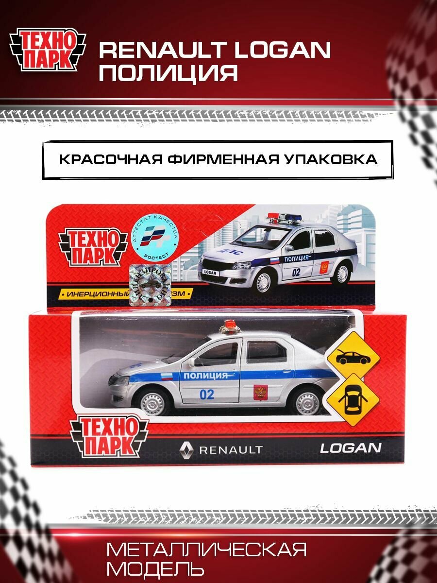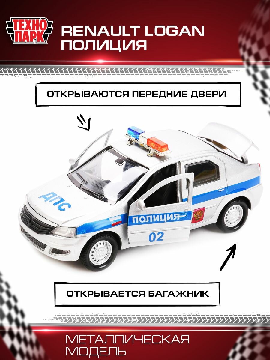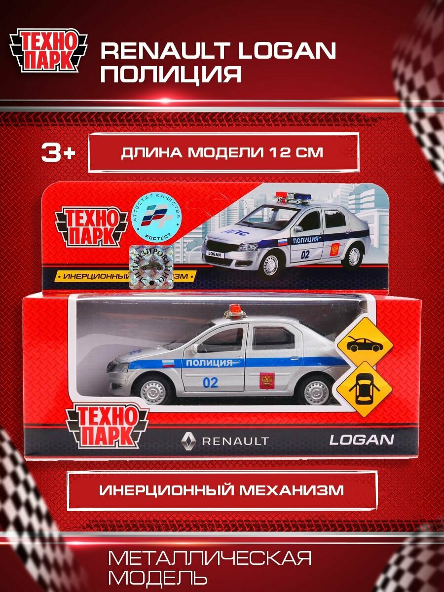 Машинка игрушка детская для мальчика Renault Logan Полиция Технопарк детская модель коллекционная инерционная 12 см