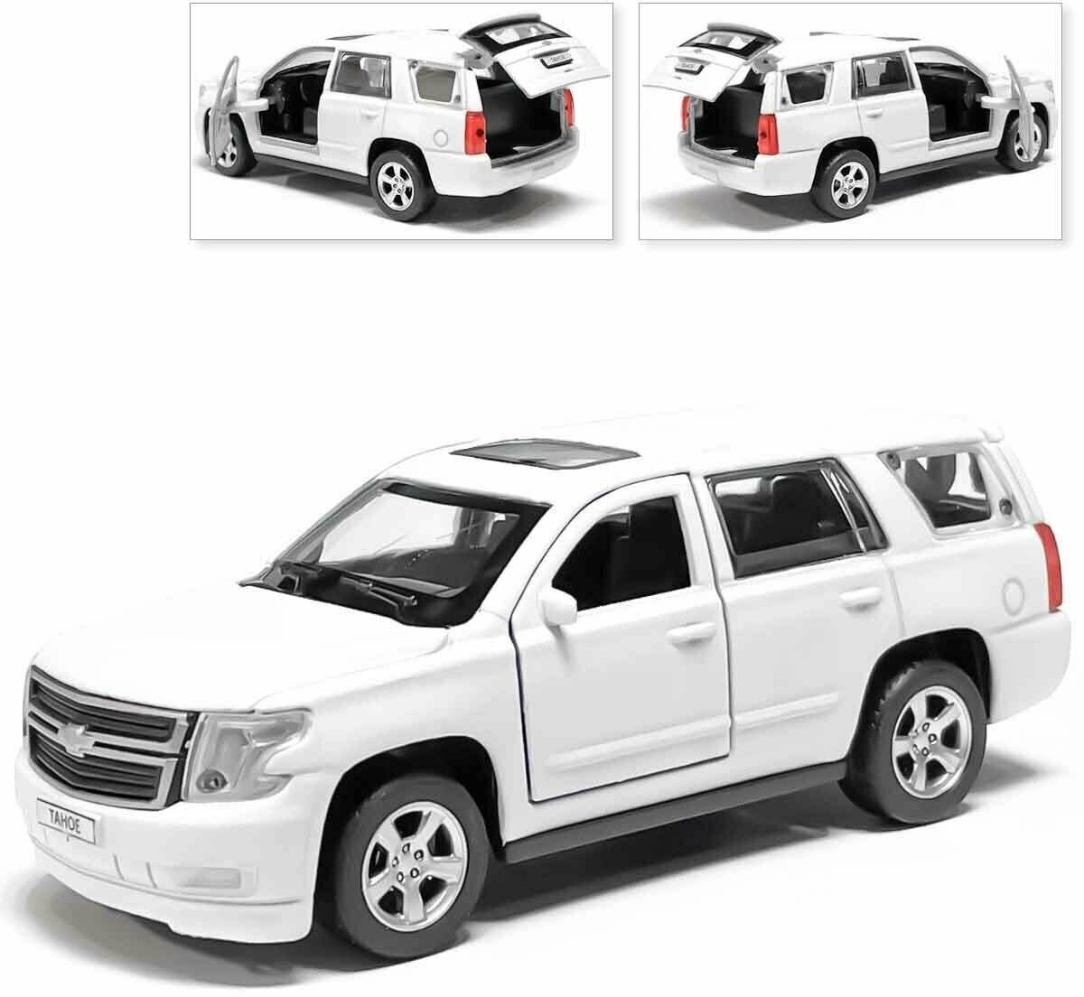 Машинка детская Chevrolet Tahoe 12 см, Технопарк, белая, открываются двери и багажник, металлический корпус