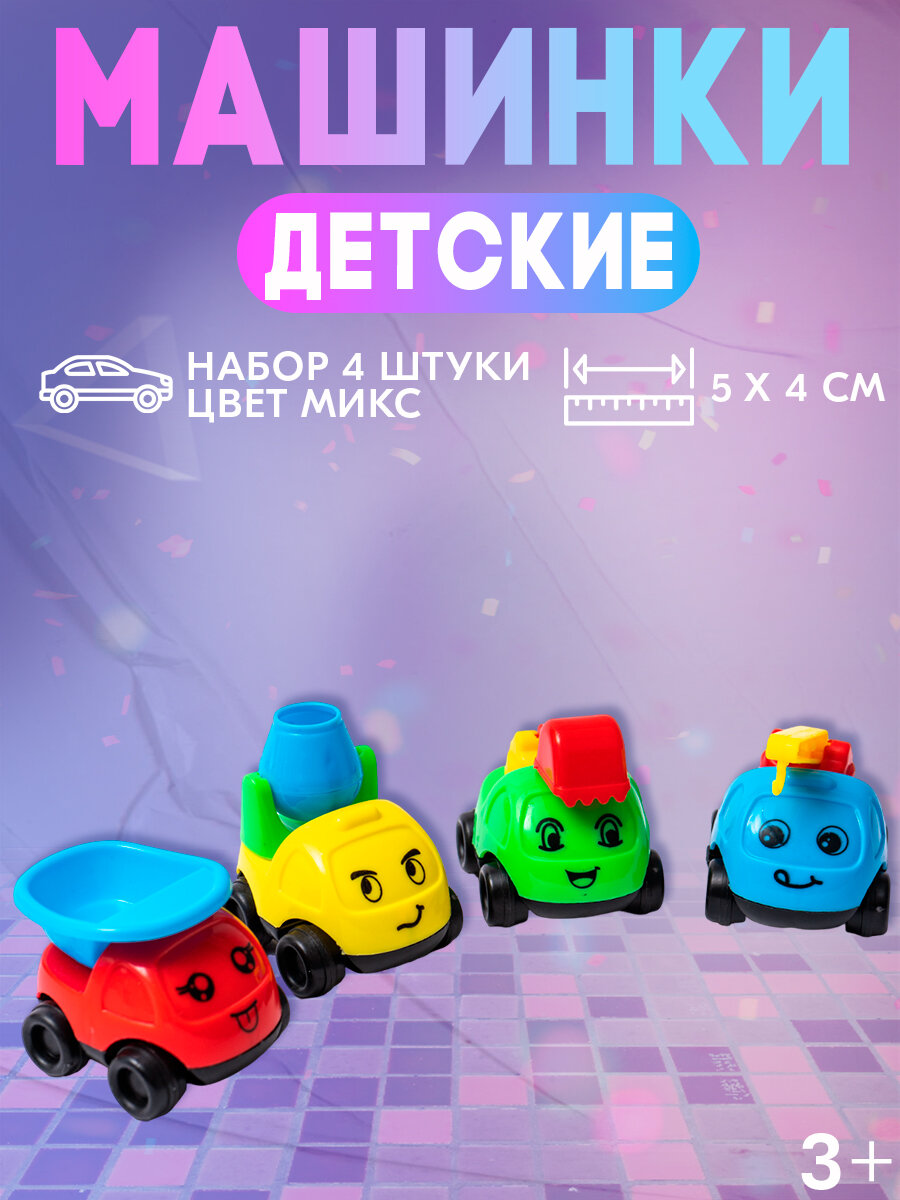 Машинки детские, набор из 4 штук, из пластика, для детей и малышей, цвет микс интересное: