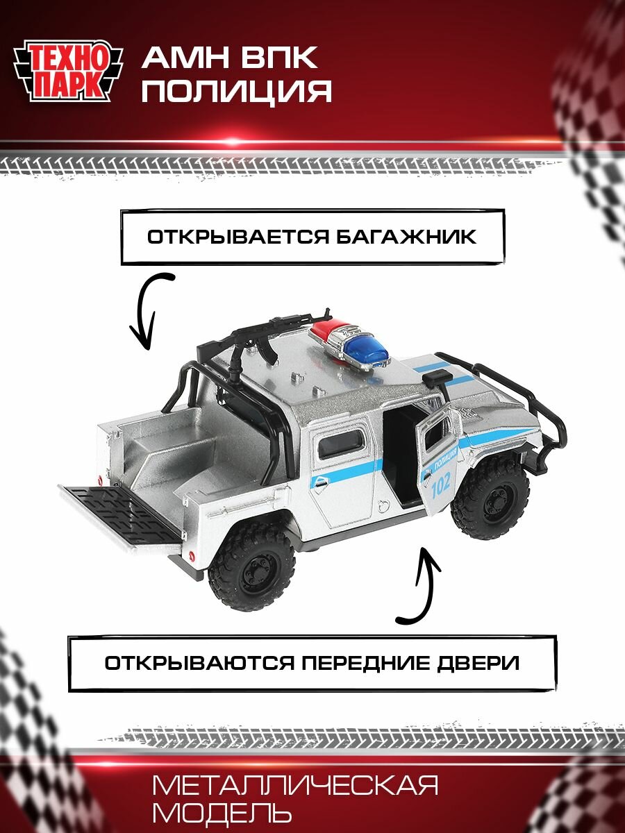 Технопарк. Машина ВПК АМН Полиция 12 см, металл свет-звук двери, багаж, арт.AMNPICKUP-12SL-POL-GY
