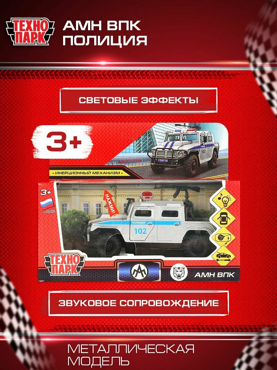 Машина 'ВПК АМН Полиция' 12 см металлическая свет звук