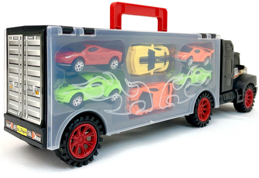 Трейлер с машинками, автовоз с набором металлических машинок, кейс с ручкой, 40х12х9 см