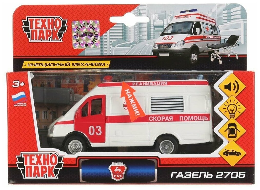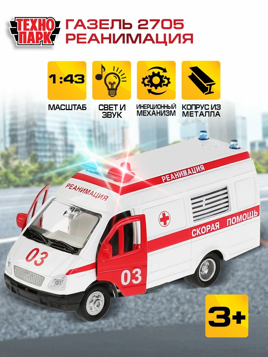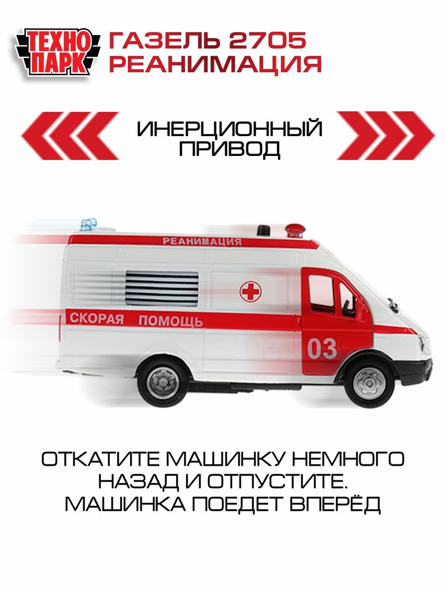 Модель машины Технопарк ГАЗ 2705 Газель Реанимация, инерционная, свет, звук СТ-1276-1
