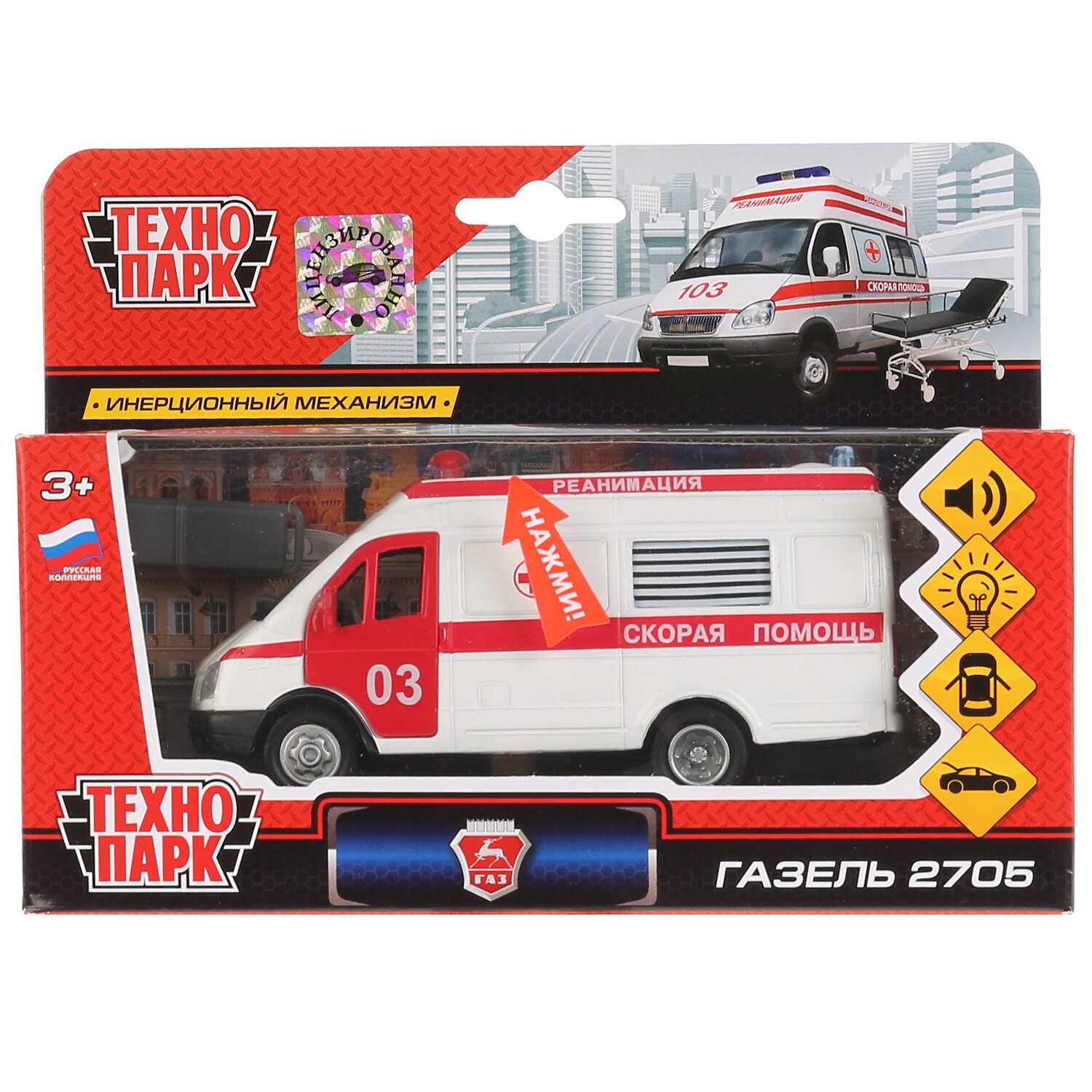 СохранитьМашинка инерционная для мальчиков Газель реанимация Технопарк интересное: