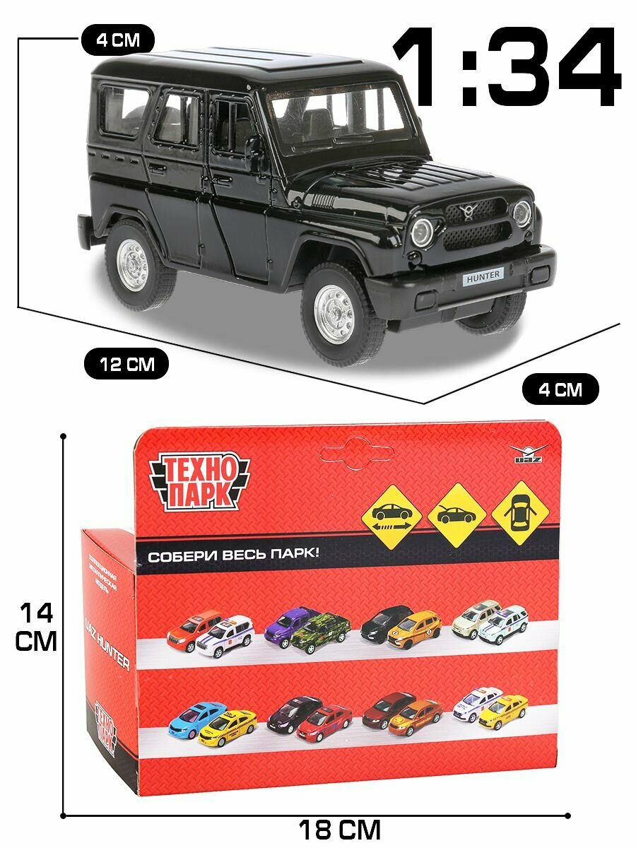 Купить Машинка игрушка детская для мальчика УАЗ Хантер Технопарк детская металлическая модель коллекционная черный 12 см