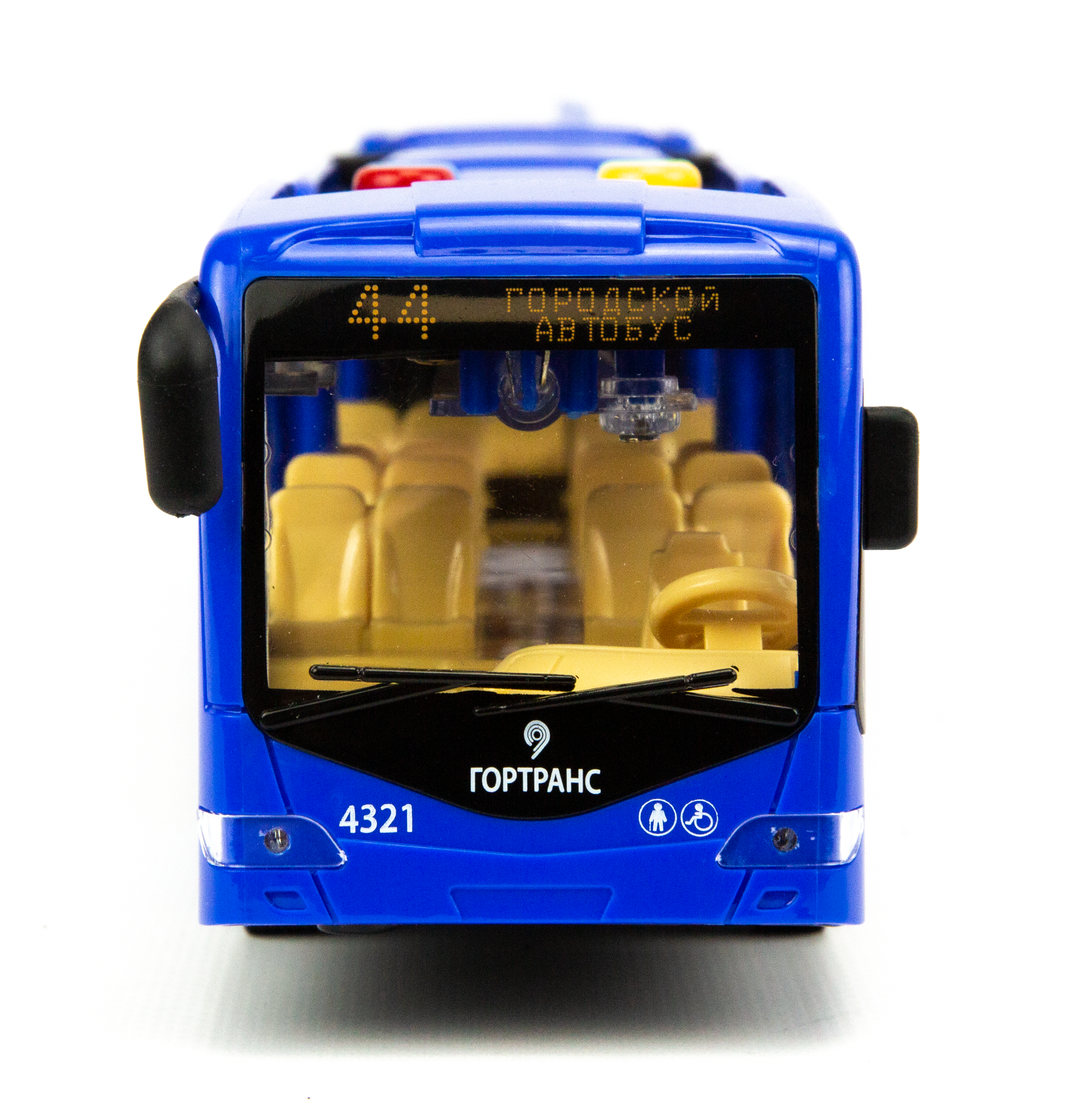 Купить Автобус 45см синий Технопарк пластик. инерц. свет+звук, отк. двери, подвижный корпус